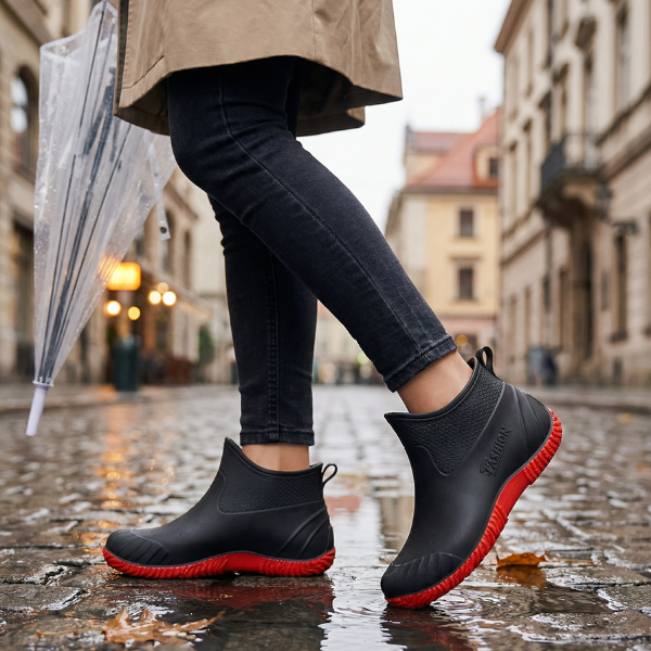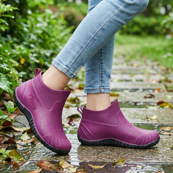 Stivaletti corti da donna in PVC con fodera in cotone, che offrono calore e comfort nelle giornate fredde e piovose; design alla moda e pratico con suola antiscivolo per passi sicuri in città e al lavoro.