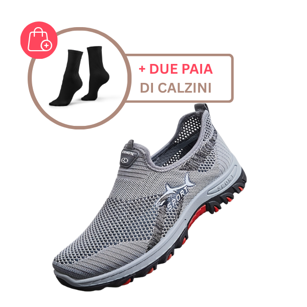 I materiali traspiranti mantengono i piedi freschi, mentre la suola antiscivolo garantisce un passo sicuro su qualsiasi superficie. Che tu sia in città, a passeggio, nella natura o sempre in movimento – EXOVENT ti regalano la sensazione di camminare senza peso.